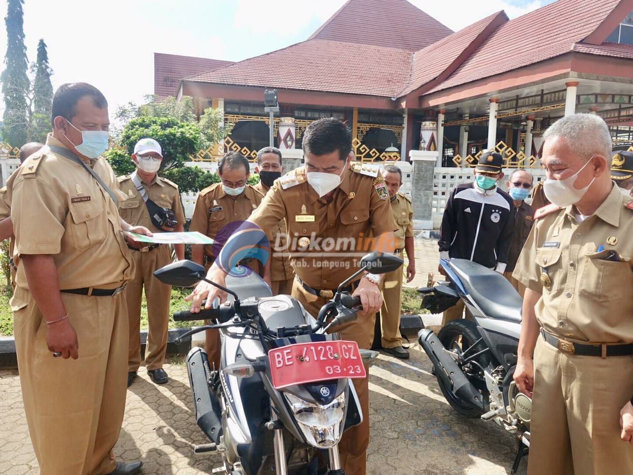 Lampung Tengah, A1BOS.COM - Bupati Lampung Tengah Musa Ahmad membagikan secara simbolis Kendaraan Dinas Roda Dua kepada petugas di Lingkungan Dinas Pertanian Kabupaten Lampung Tengah, yang bertempat di Rumah Dinas Bupati, Selasa (04/05/2021).