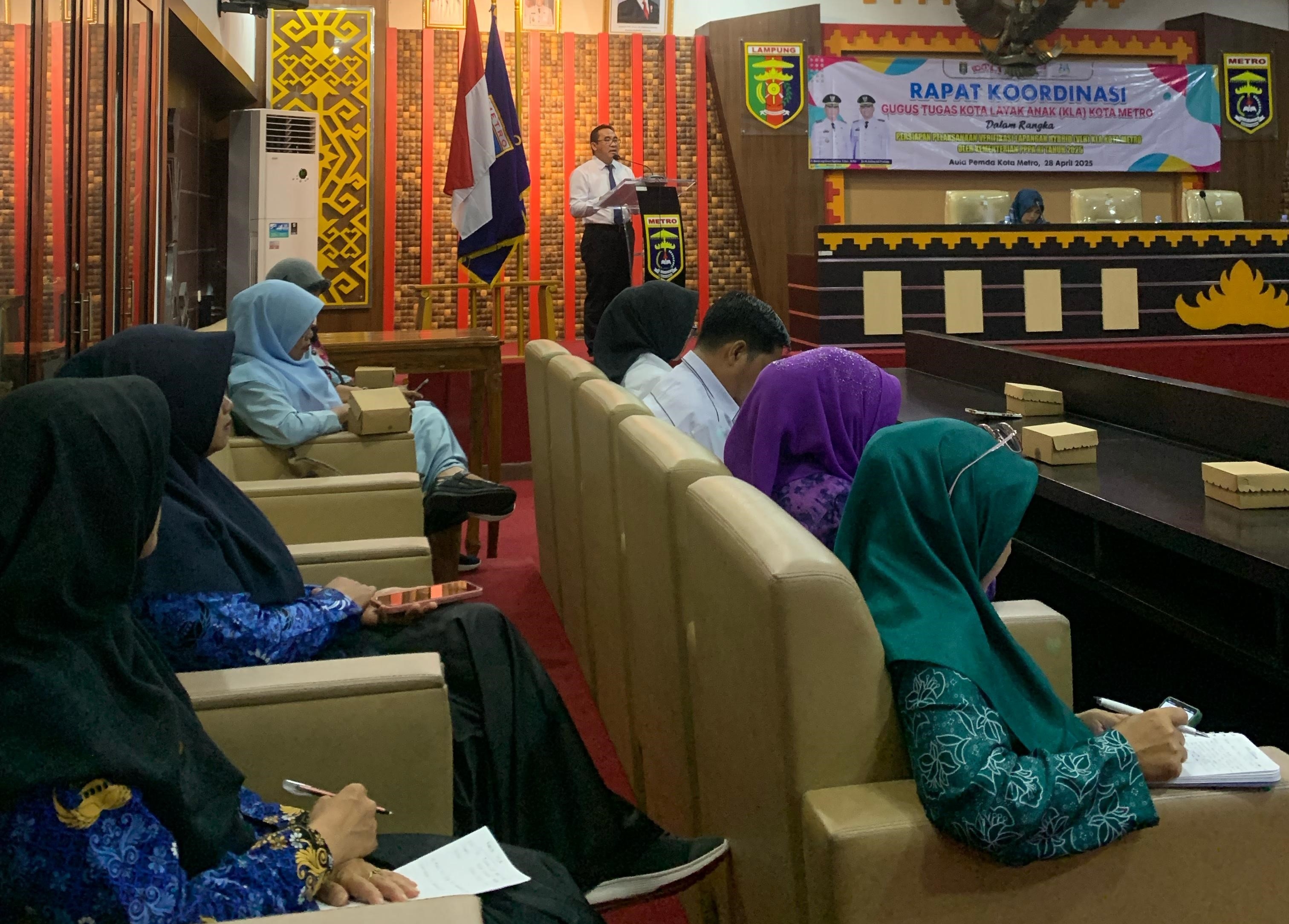 Kepala Dinas Pemberdayaan Perempuan, Perlindungan Anak, Pengendalian Penduduk, dan Keluarga Berencana (DP3AP2KB) Kota Metro, Wahyuningsih, dalam laporannya menjelaskan bahwa Rakor ini bertujuan memperkuat kesiapan Metro untuk memenuhi 24 indikator KLA, yang meliputi hak sipil dan kebebasan, lingkungan keluarga dan alternatif, kesehatan dasar dan kesejahteraan, pendidikan serta perlindungan khusus.
