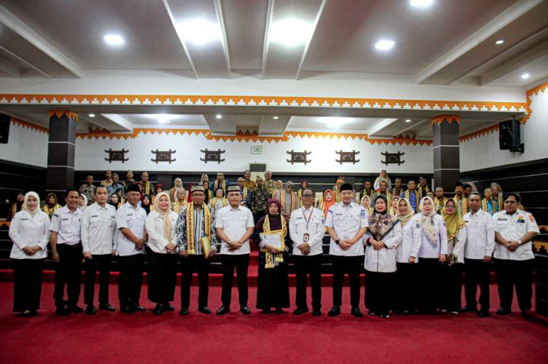 Kota Metro, A1BOS.COM - Pelepasan 74 Aparatur Sipil Negara (ASN) yang memasuki Batas Usia Pensiun (BUP) periode 1 Juli hingga 1 Desember 2025 yang berlangsung di Aula Pemerintah Kota Metro, Rabu (03/12/2025).