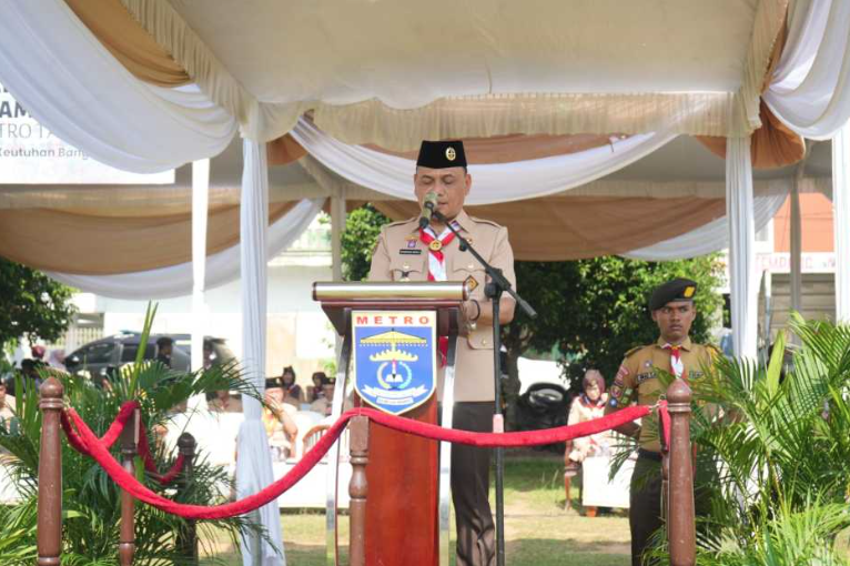 Wali Kota Metro sebagai Ketua Majelis Pembimbing Cabang (Mabicab) membacakan Pidato Sambutan dari Ketua Kwartir Nasional (Kwarnas) Gerakan Pramuka Purn. Komjen Pol. Drs.H.Budi Waseso.