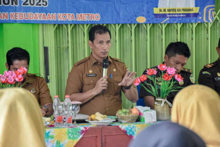 Kota Metro, A1BOS.COM - Pelaksana Tugas (Plt) Kepala Dinas Pendidikan dan Kebudayaan Kota Metro, Deddy Hasmara, menjadi pembina apel sekaligus memberikan sosialisasi Pembinaan Hukum Bagi Satuan Pendidikan di Kota Metro yang berlangsung di SD Negeri 4 Metro Utara, Senin (20/10/2025).